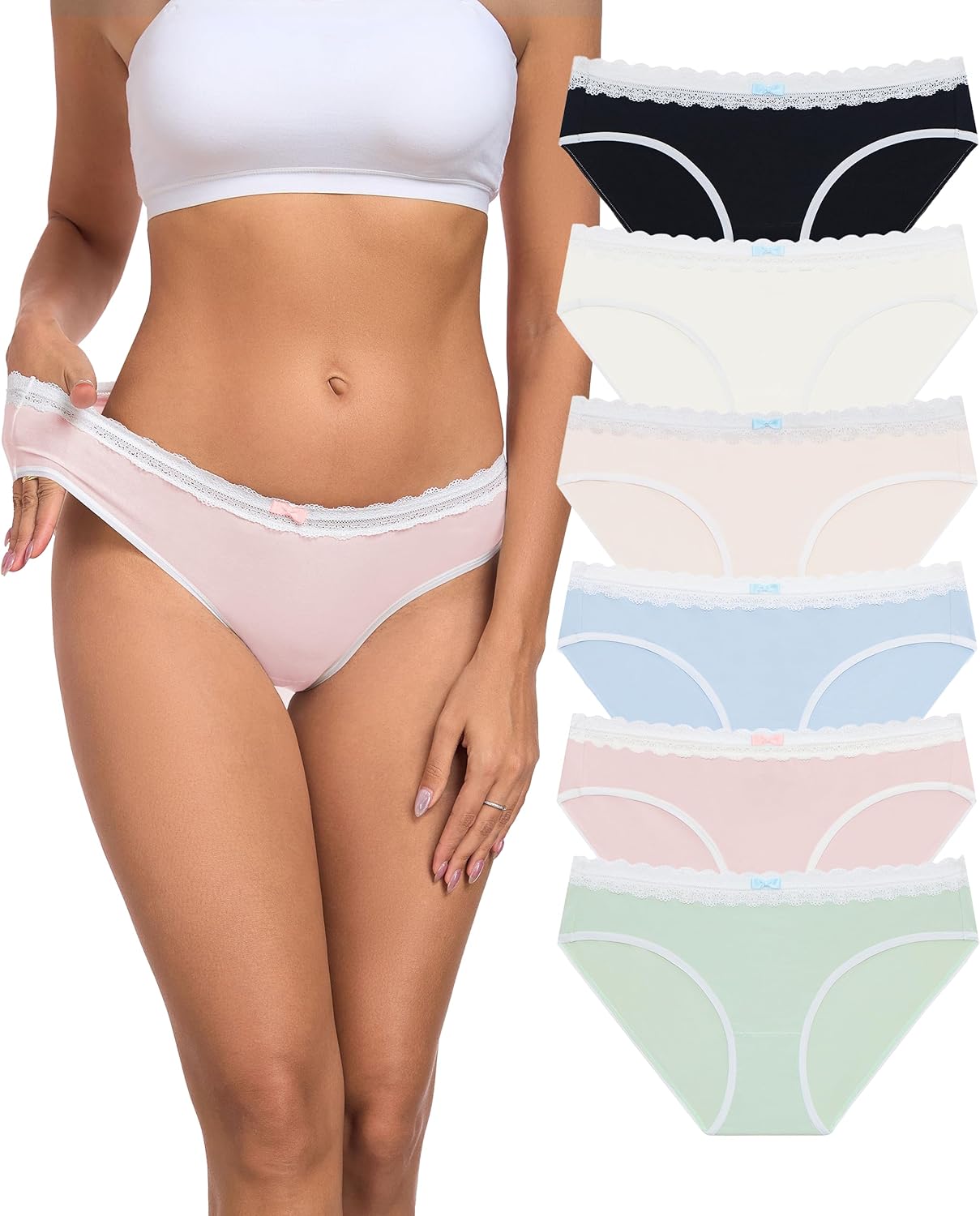 ANLIQI Women's Cotton Underwear Lace Trim Bikini Panties for Women Moisture Wicking Underwear Ladies Hipster Panty Multipack