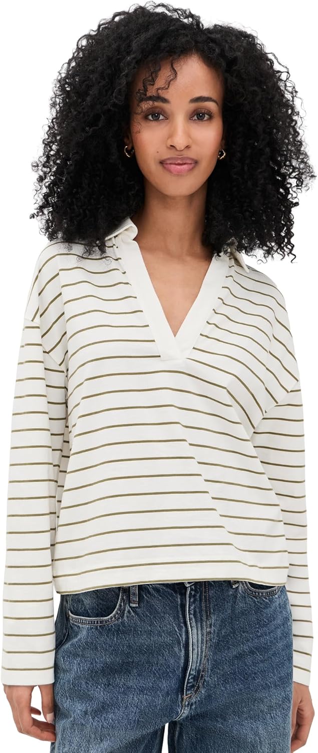 Vince Women's Striped Easy Long Sleeve Polo