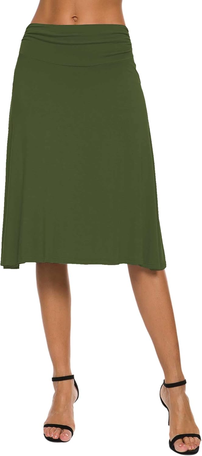 EXCHIC Women's Solid Stretch Ruched Waistband Flared Midi Yoga Skirt