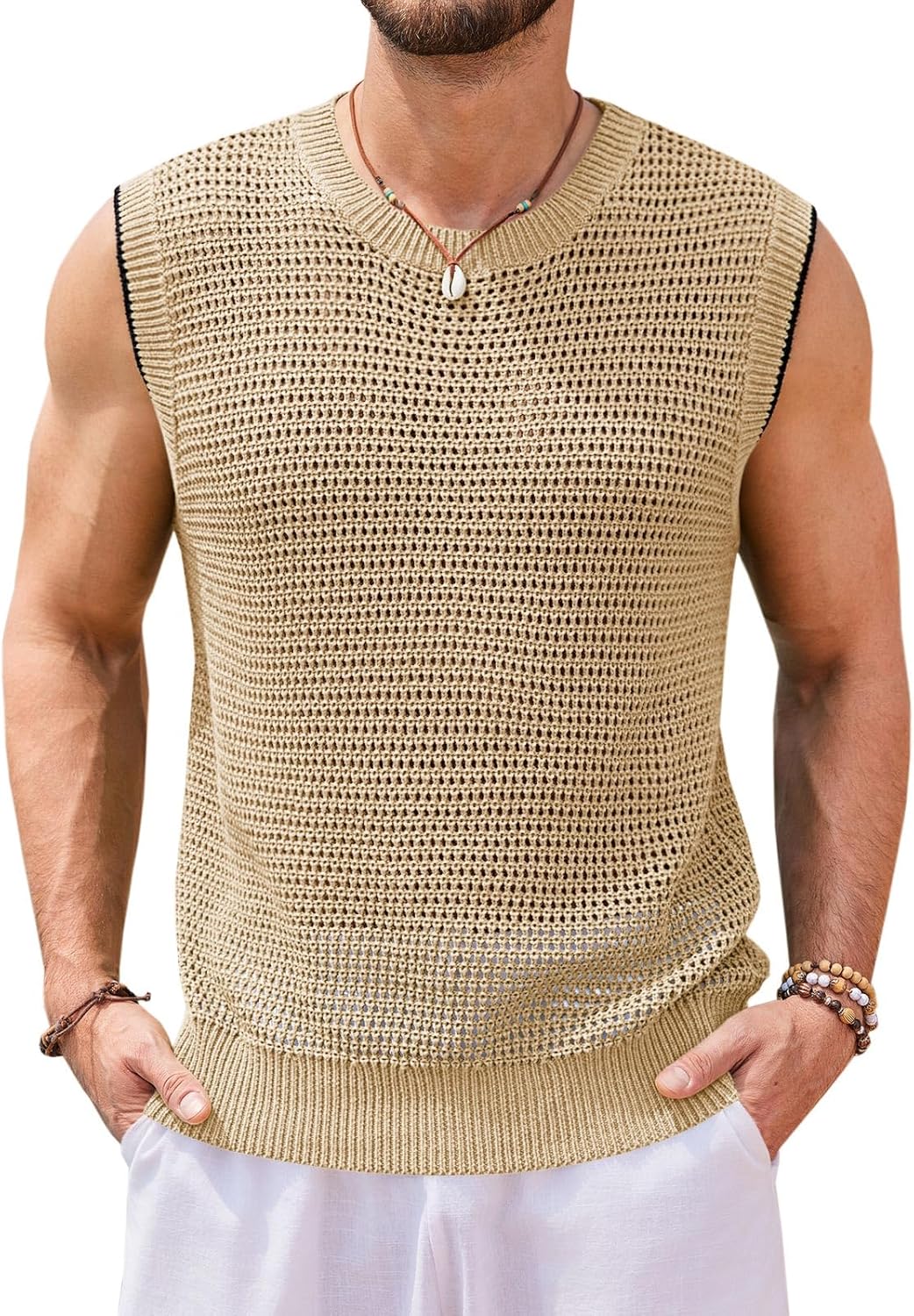Runcati Mens Knitted Tank Tops Sleeveless Crochet See Through T-Shirts Muscle Summer Beach Hippie Shirts