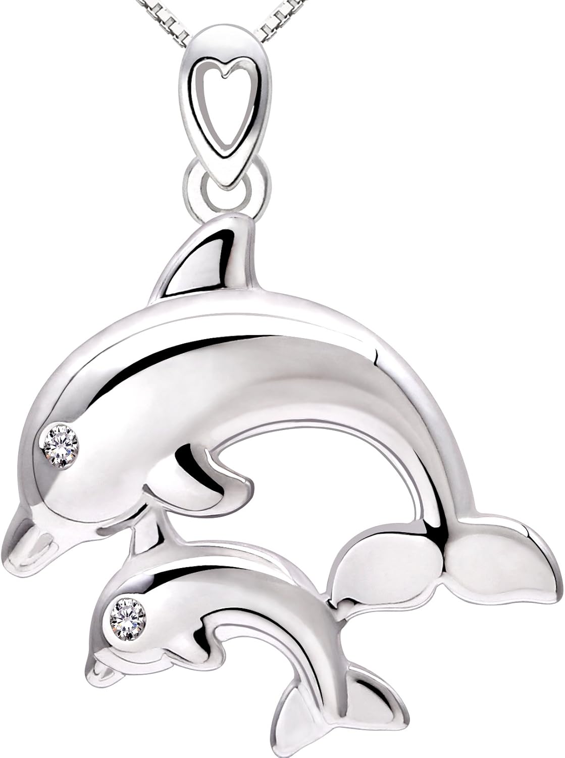 ALOV Jewelry Sterling Silver "I Will Always Love You" Mother Love Dolphin Cubic Zirconia Pendant Necklace