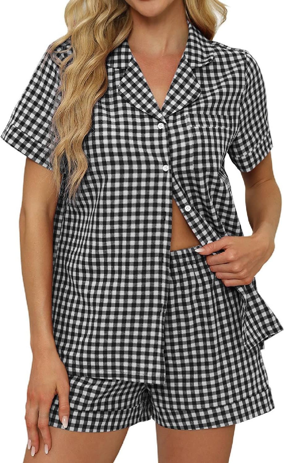Aoulaydo Women's 2 Piece Pajama Sets Plaid PJ Set Short Sleeve Button Down Shirt and Christmas Lounge Sets