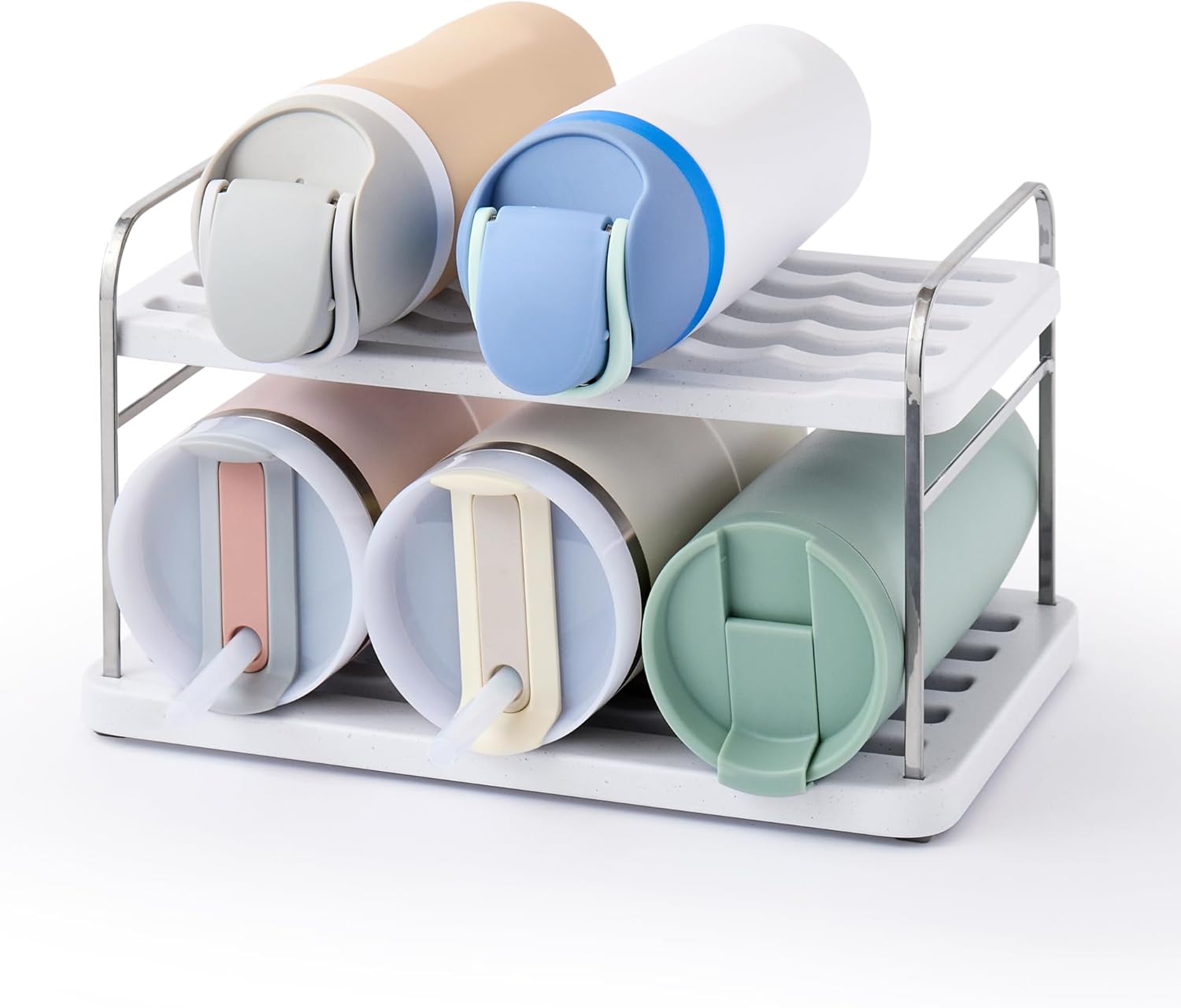 YouCopia UpSpace Water Bottle and Travel Mug Cabinet Organizer, Adjustable Storage Rack for 40 oz Stanley Tumblers, 6 Bottle Premium Edition