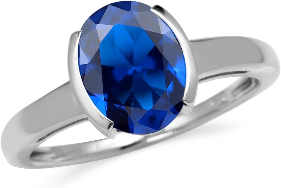 Silvershake 10X8mm Oval Shape Gemstones White Gold Plated or Yellow Gold Plated 925 Sterling Silver Half Bezel Set Right Hand Solitaire Ring Jewelry for Women