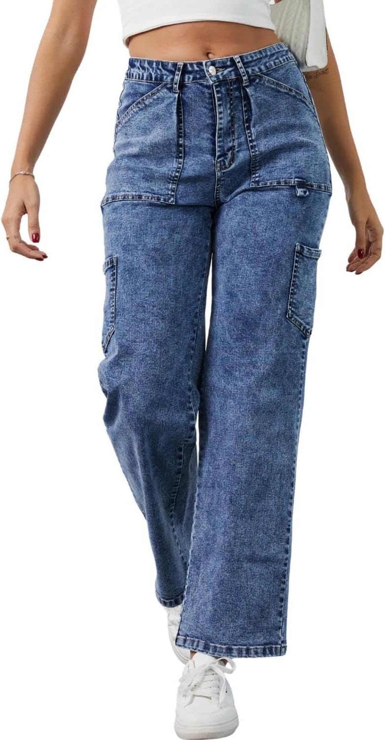 Sweezarmo Women's Cargo Jeans High Waisted Solid Color Denim Casual Stretch Elastic Waist Joggers with Pocket