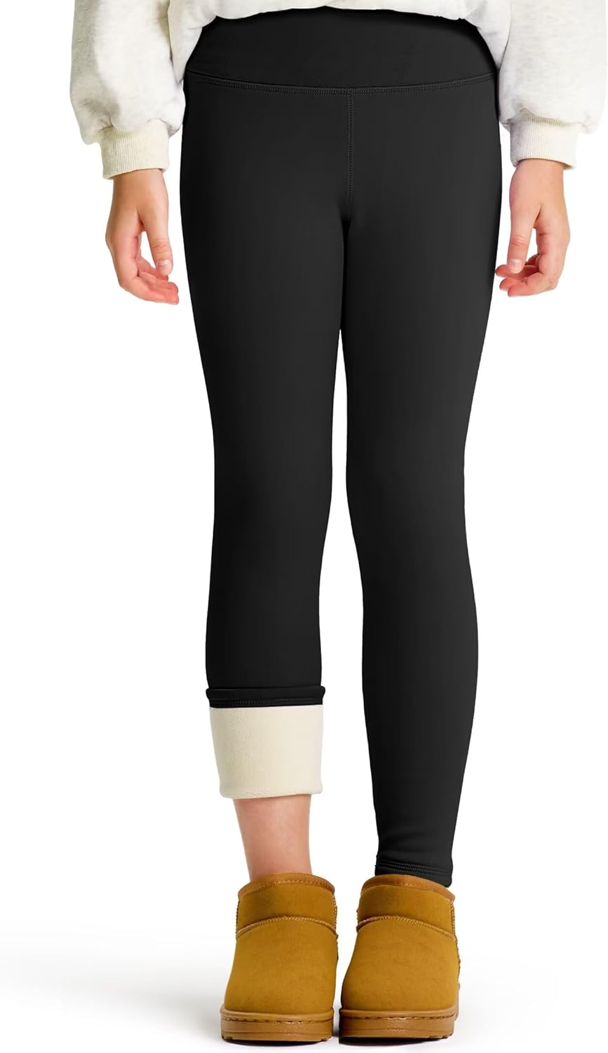 Girls Thermal Fleece Lined Leggings, Warm Winter Yoga Pants for Kids Toddlers Youth