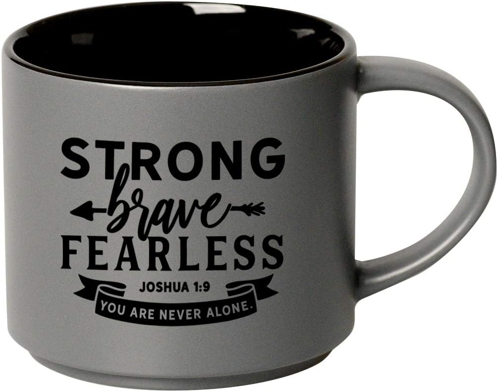 Dexsa Coffee Tea Soup Ceramic Mug | Strong Brave Fearless Joshua 1:9 You are never alone | 16 ounce Designer Mug with Inspiring Sentiment | Dishwasher and Microwave Safe | Stackable