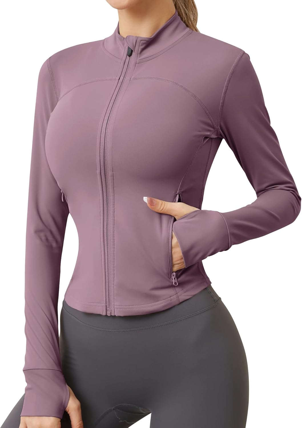AKEWEI Womens Zip Up Workout Jackets Lightweight Athletic Slim Fit Track Jacket with Inner and Outer Pockets and Thumb Holes