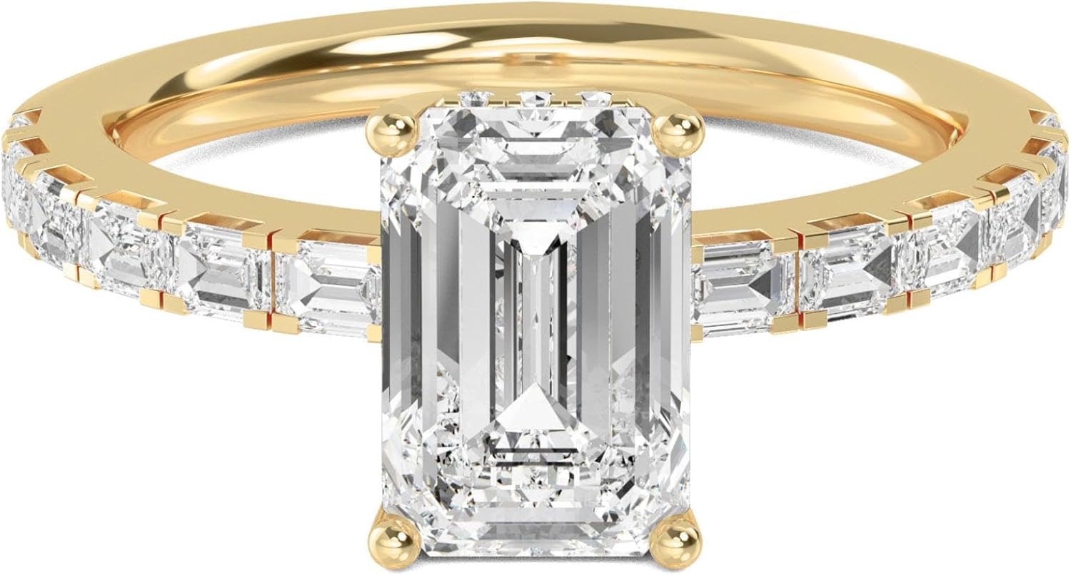 Houston Diamond District 1 to 5 Carat Emerald Round Cut LAB GROWN Diamond Halo Engagement Ring (Color E-F Clarity VS1-VS2)