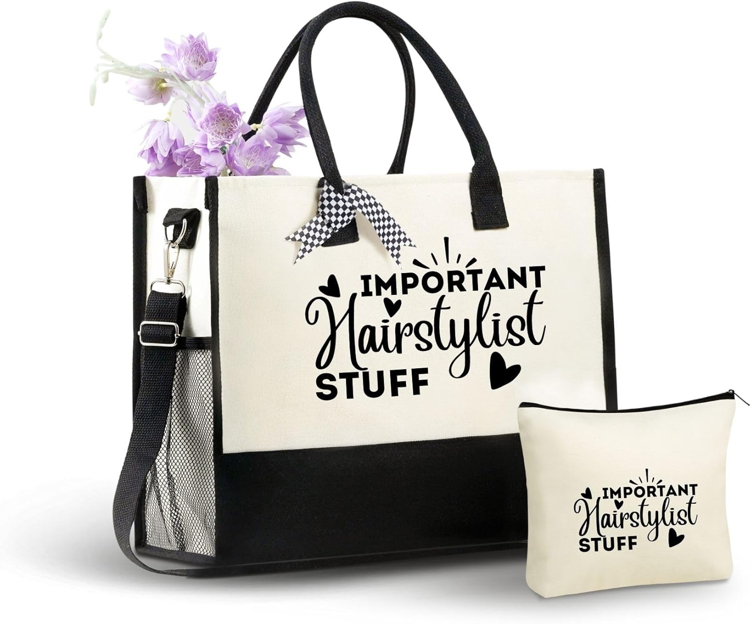 InnoBeta Hair Stylist Gifts, Gifts for Hairdressers Female, Canvas Tote Bag with Top Zipper Closure and Shoulder Strap for Birthday, Mother's Day, Christmas