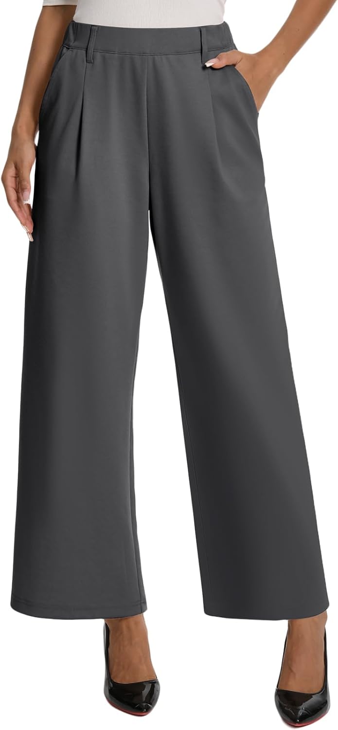 Womens Dress Wide Leg Pants Pull On Stretchy Work Pants High Waisted Business Causal Palazzos Trousers with Pockets