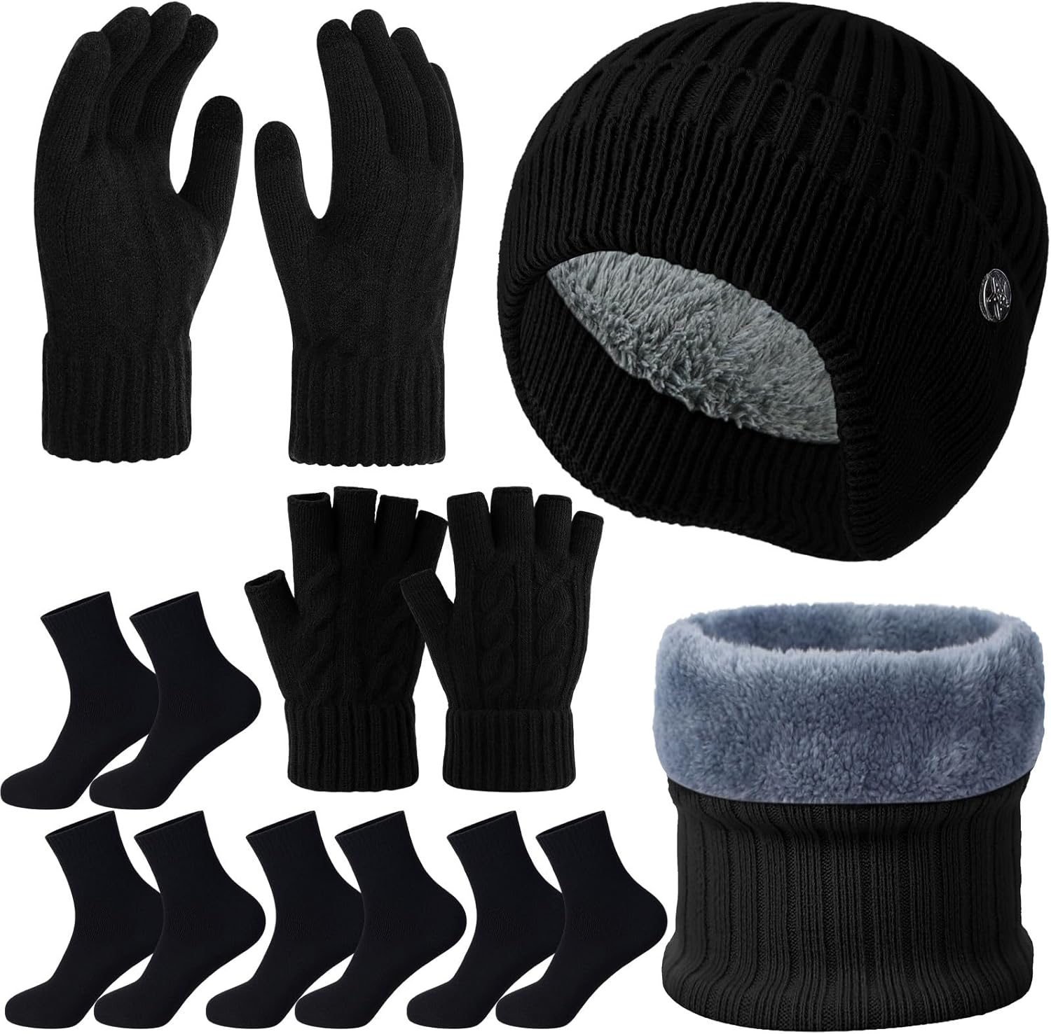 8 Pcs Winter Warm Beanie Hat Scarf Glove Socks Set for Men Fleece Lining Thermal Knitted Earflap Cap Gift Outdoor