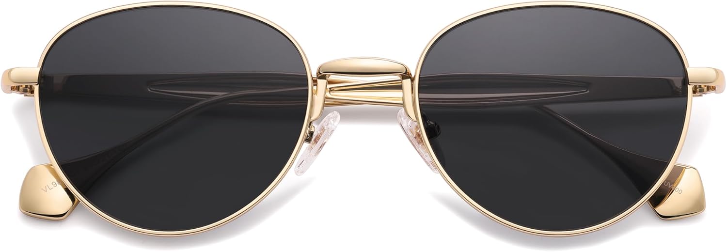 VANLINKER Small Polarized Sunglasses for Women Men Retro Round Metal Frame Classic Hippie Circle Shades VL9880