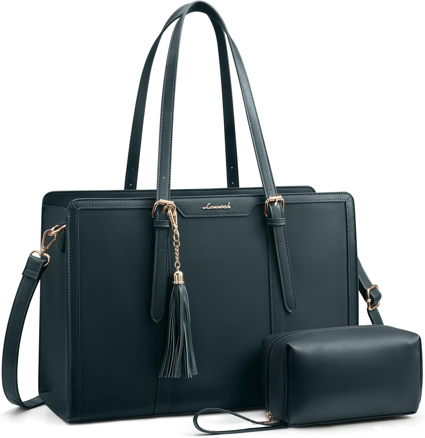 LOVEVOOK Laptop Bag for Women 15.6 inch Lightweight PU Laptop Tote Bag, Large Capacity Computer bag with Clutch Purse for Business, Work, Office, Travel, School,Casual