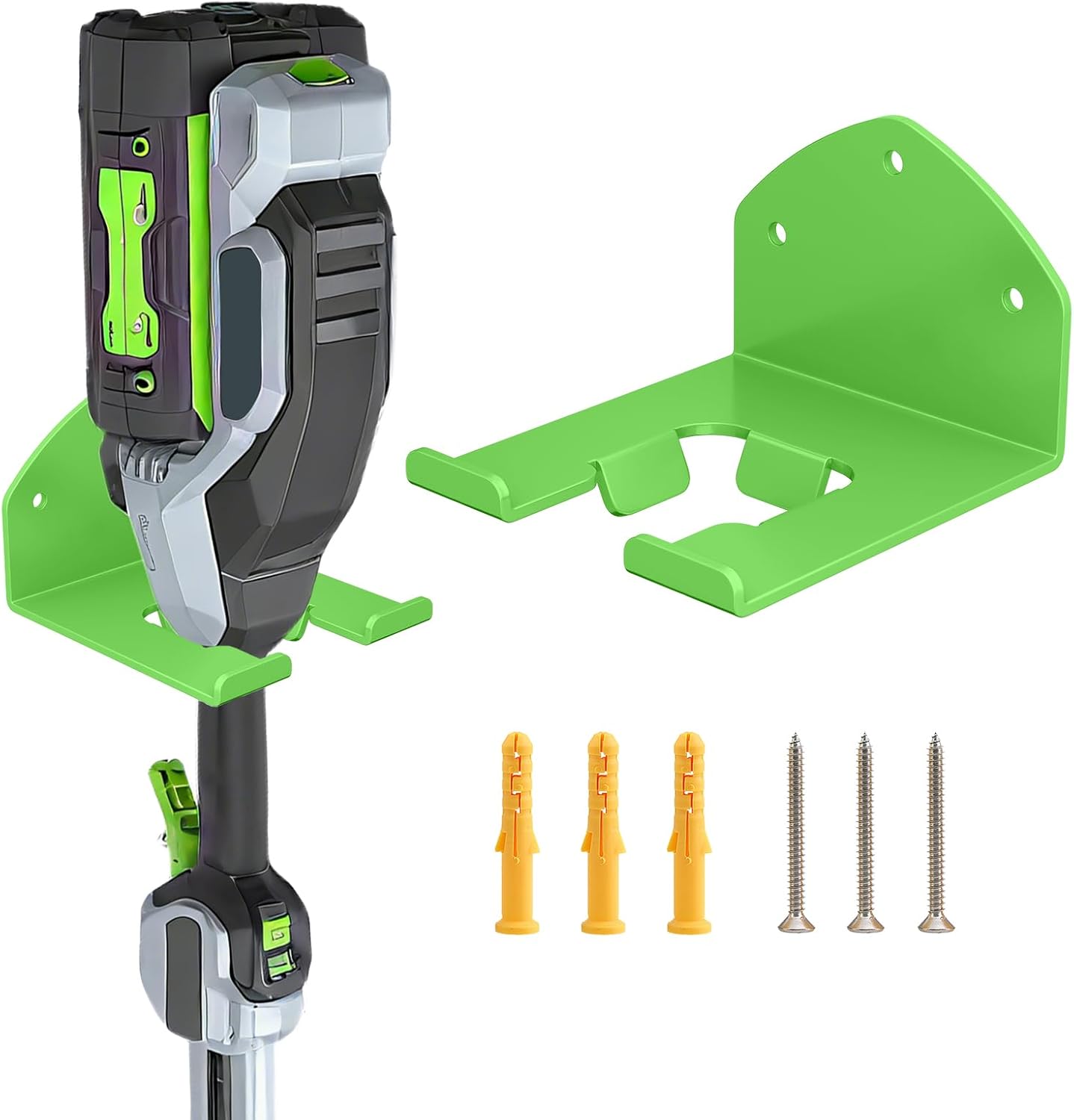- Sleek & Stylish Design – Featuring smooth edges and a vibrant green powder-coated finish, this holder complements the EGO mower’s aesthetic while adding a tidy, organized look to your garage or shed. Function meets fashion!