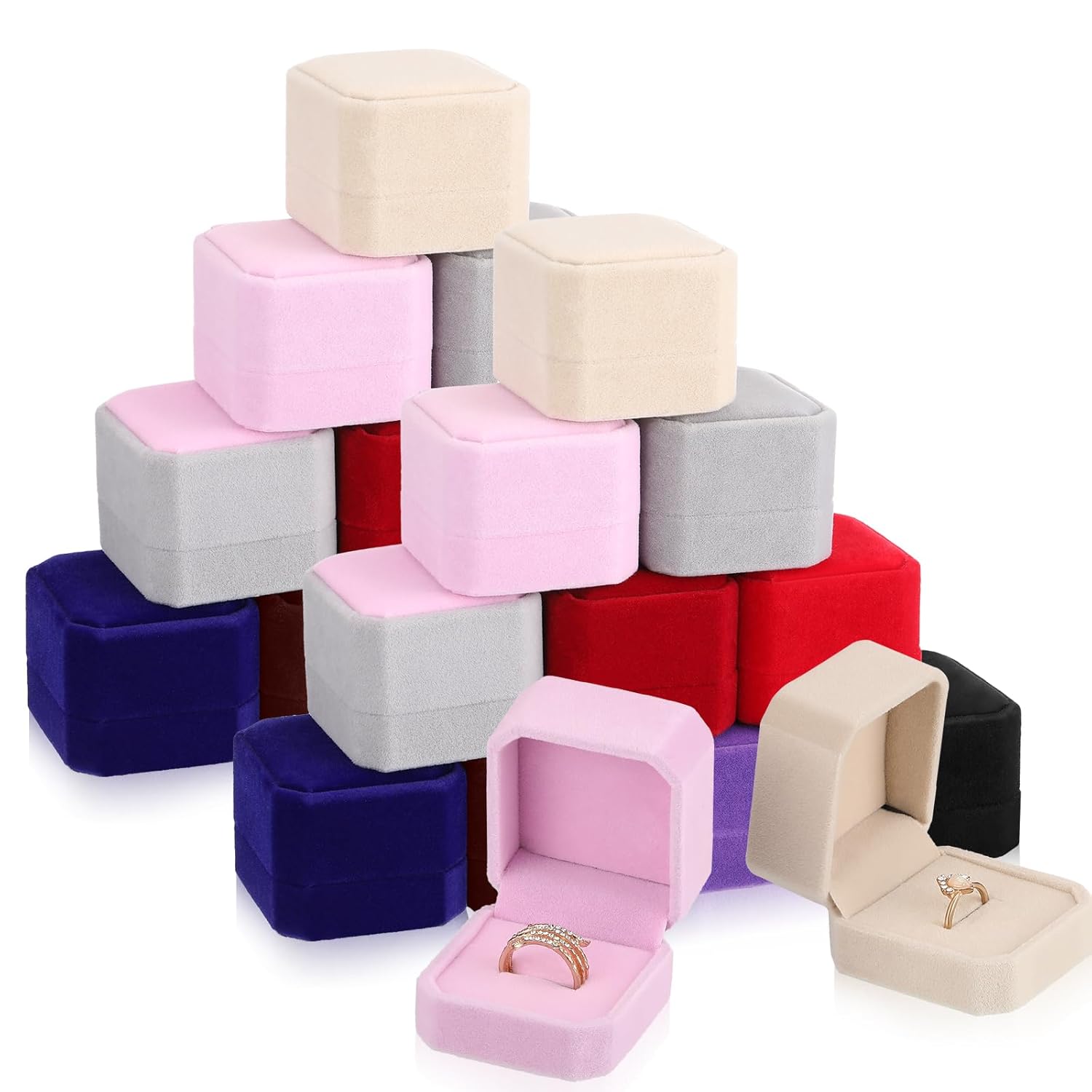 Yaomiao Velvet Ring Box for Wedding Ceremony Engagement Box Jewelry Boxes Packaging Display Ring Case Earring Storage Holder for Proposal Anniversary Birthday Gift Assorted Color(40 Pcs)
