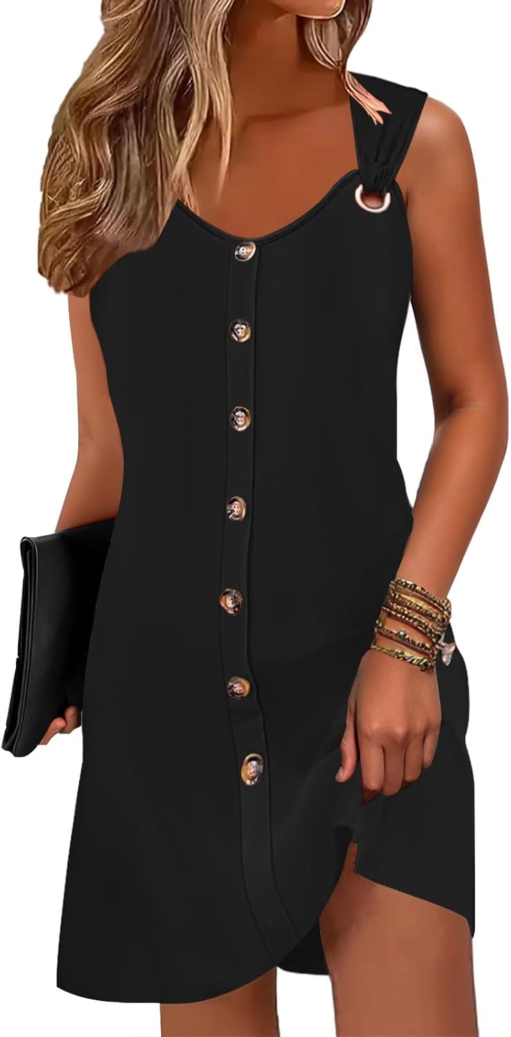Disamer Summer Dresses for Women 2026 Sundresses Beach Swimsuit Coverups Vacation Sleeveless Button Down Spring Sun Dress