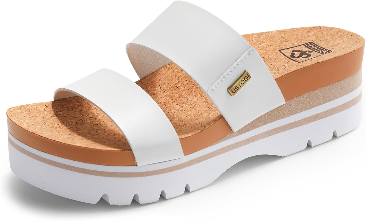 Women's Higher Platform Sandals Arch Support Beach Slides for Woman Orthotic Summer Causal Cork Footbed Slip on Cushion Cute 2 Strap Flatform 2.2IN sandalias de mujer