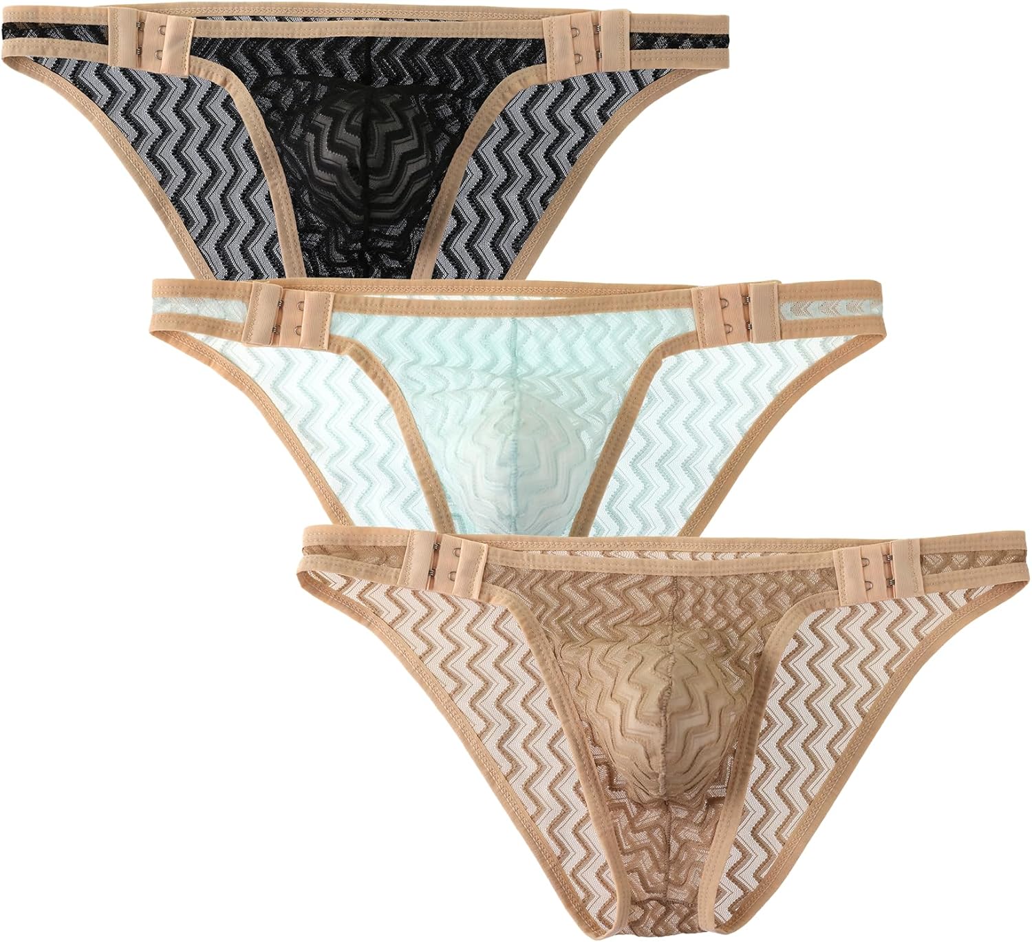 Men's underwear Briefs Breathable quick drying lace adjustable size loose open youth transparent mesh low waist