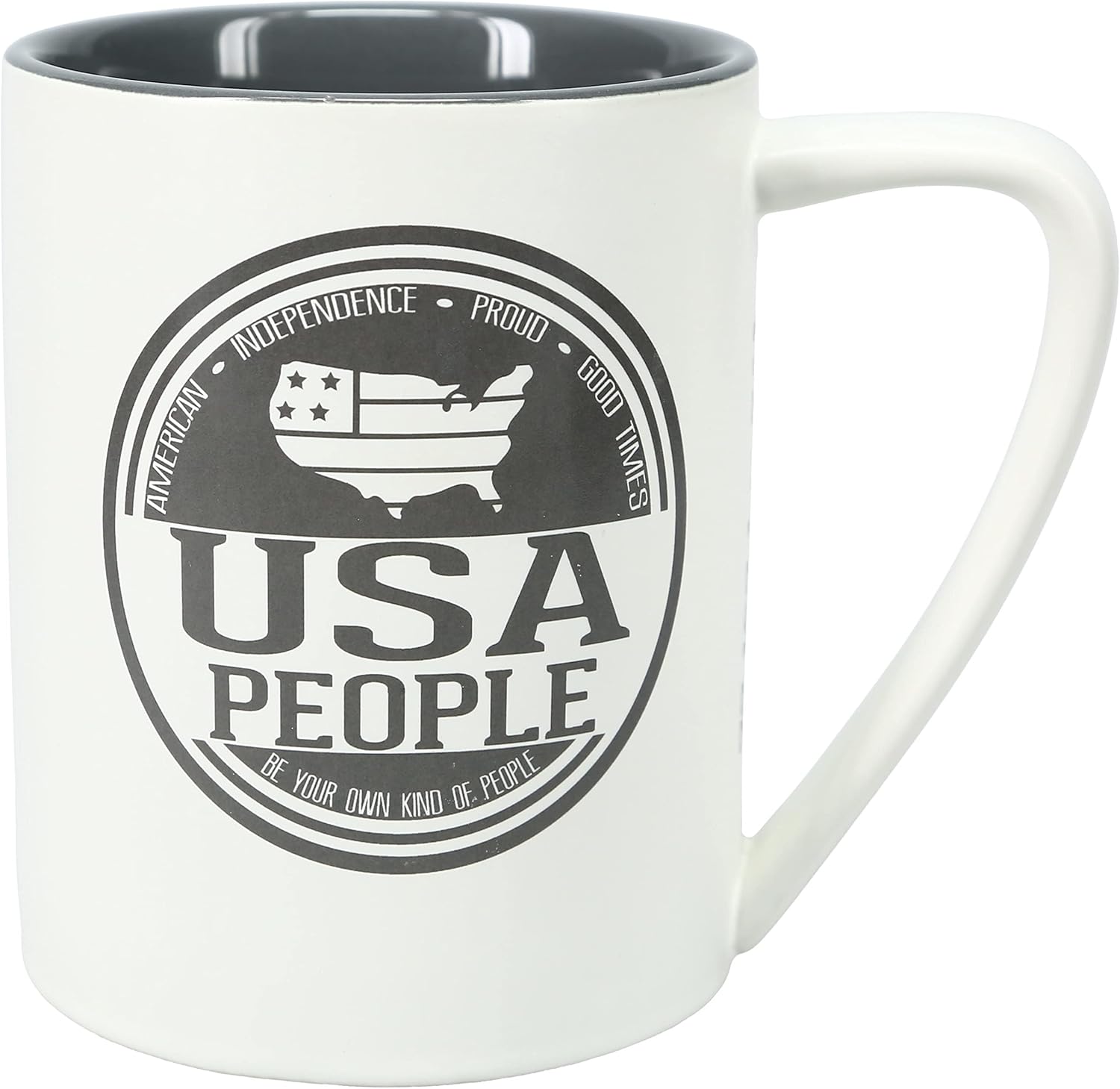 - IN-HOUSE DESIGN: "USA People" decal, including "American - Independence - Proud - Good Times" text is printed on both sides of the mug, as are the accompanying map icon and "Be Your Own Kind Of People" text.