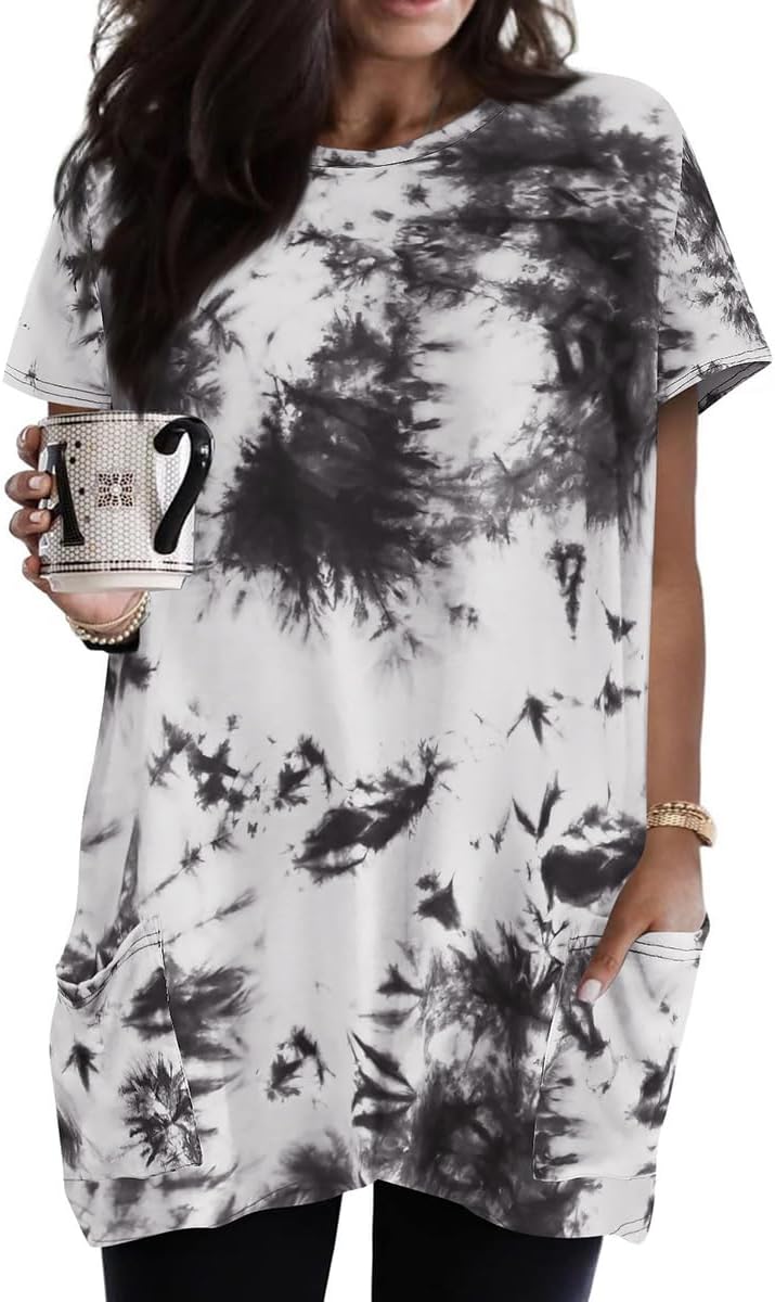 RITERA Plus Size Tops for Women Long Tunic Tops Summer Long Shirts Short Sleeve Spring Tops with Pockets for Leggings XL-5XL