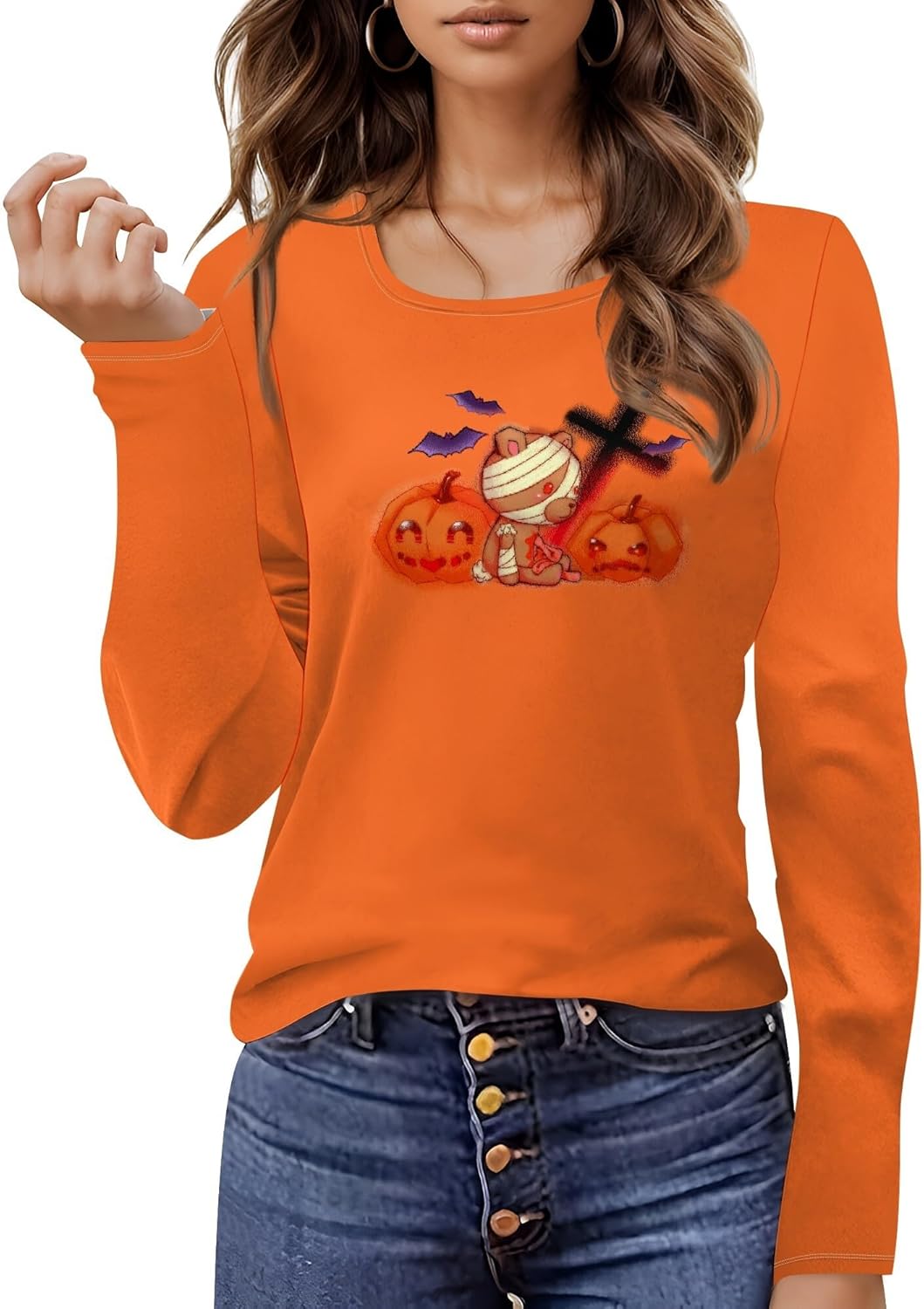 Halloween Sweatshirts For Women Cute Pullover Fall Long Sleeve Pullover U-Neck Halloween Crazy Party Club Clothes