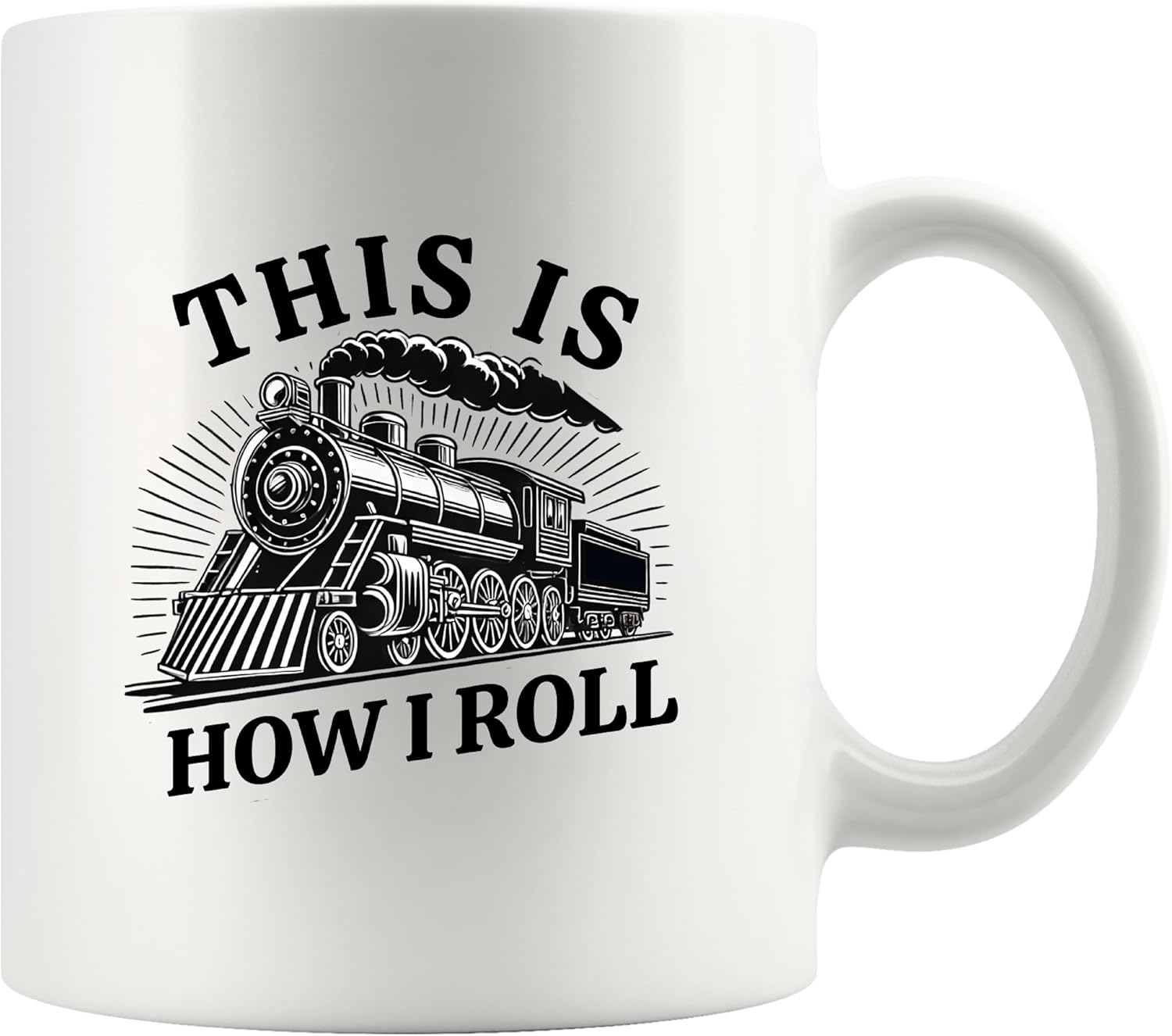 Panvola This Is How I Roll Train Lovers Gifts For Dad Mom Husband Brother Sister Wife Friend Coworker Ceramic Mug 11 oz White
