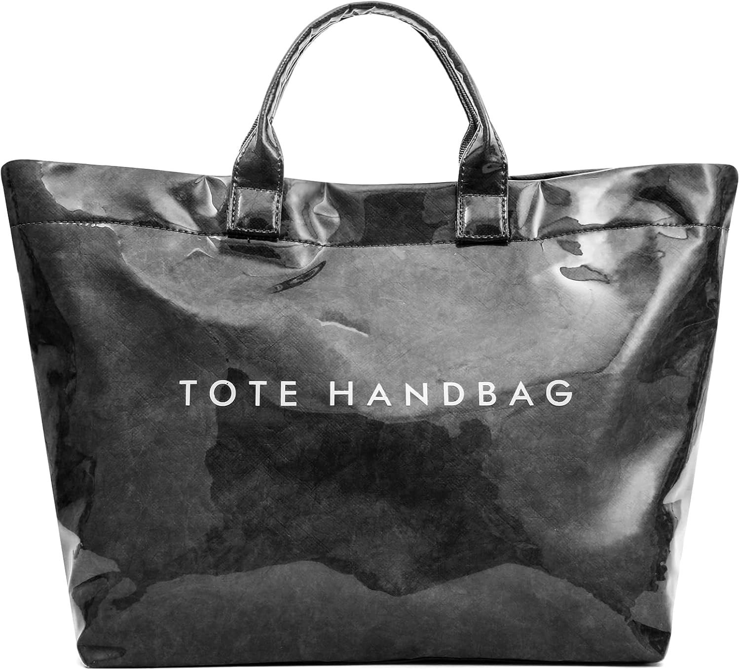 ALUSBELL Large PVC Tote Bag for Women Letters Print Tote Handbag Kraft Paper Travel Shoulder Bag Clear Carry All Hobo Handbag
