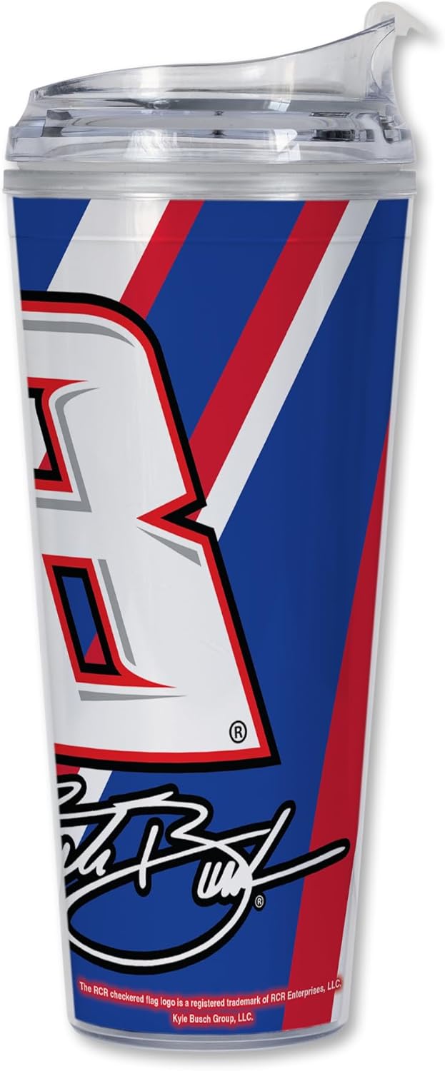 Rico Industries NASCAR Racing Kyle Busch 24oz Acrylic Tumbler with Hinged Lid, Officially Licensed Double Wall Tumbler with Straw