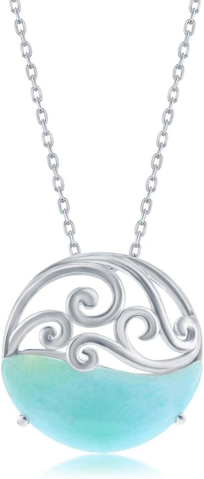 Beaux Bijoux Natural Larimar Necklace for Women - Sailboat, Crab, Seahorse, Beach Necklaces for Women - Larimar Gemstone Pendants Necklaces - Gifts for Women