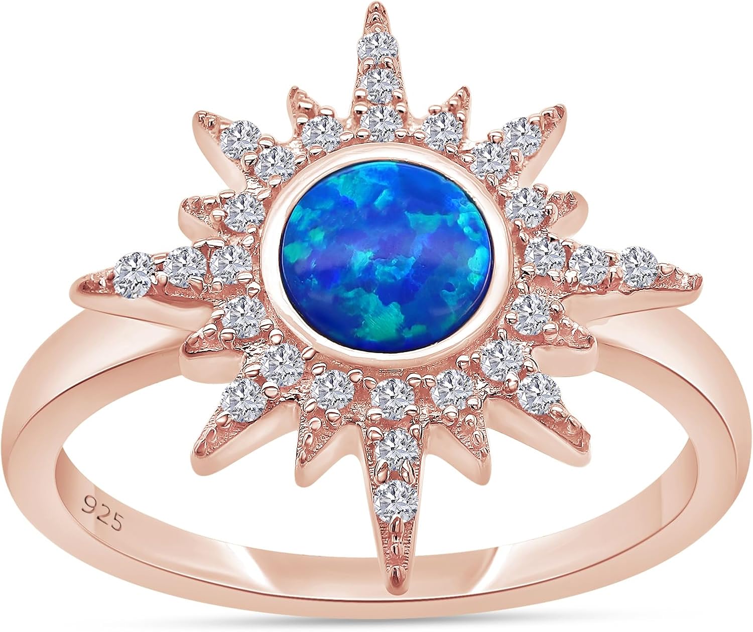 AFFY 925 Sterling Silver Lab Created Opal CZ Starburst Ring for Women
