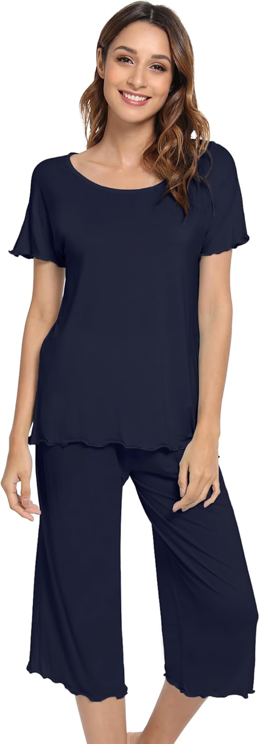 NACHILA Pajamas for Women-Viscose Made from Bamboo,Short Sleeve Sleepwear Cooling Pjs Top with Capri Pants Pajama Sets