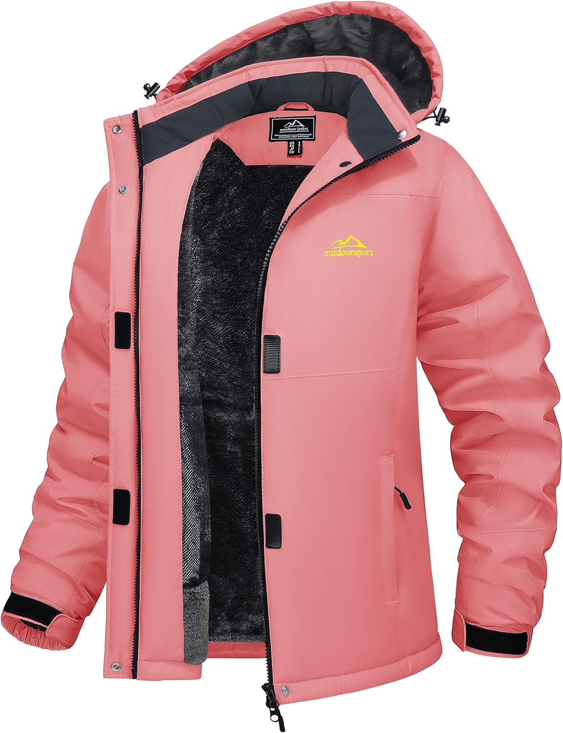 MAGCOMSEN Women's Winter Coat Ski Snow Jacket Fleece Lined Warm Waterproof Insulated Skiing Windbreaker Jacket with Hood