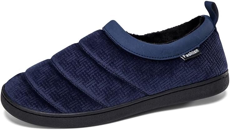 Mens Slip On Shoes Snow Winter Warm Fully Fur Lined Slippers Indoor/Outdoor Fluffy Wide Loafer Anti-Skid Rubber Sole