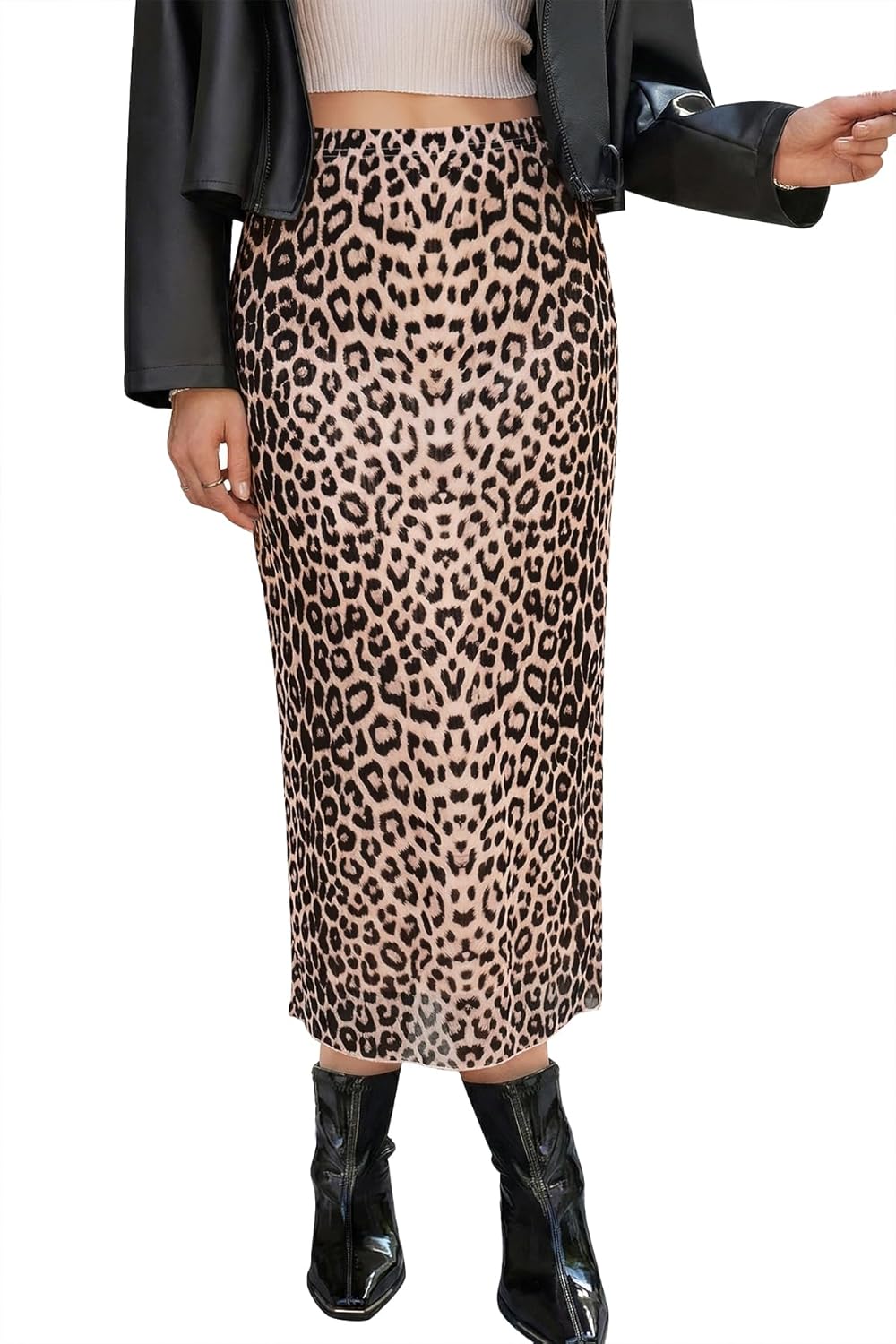 Cicy Bell Womens Floral Boho Mesh Midi Skirt Elastic High Waisted Flowy Summer Casual Vintage Long Skirts