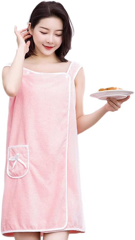 Wrap Robe with Straps, Thin Women Female Dorm Soft Bath Wrap Towels Cute Short Bathrobe Dress with Pockets After Shower (Pink)