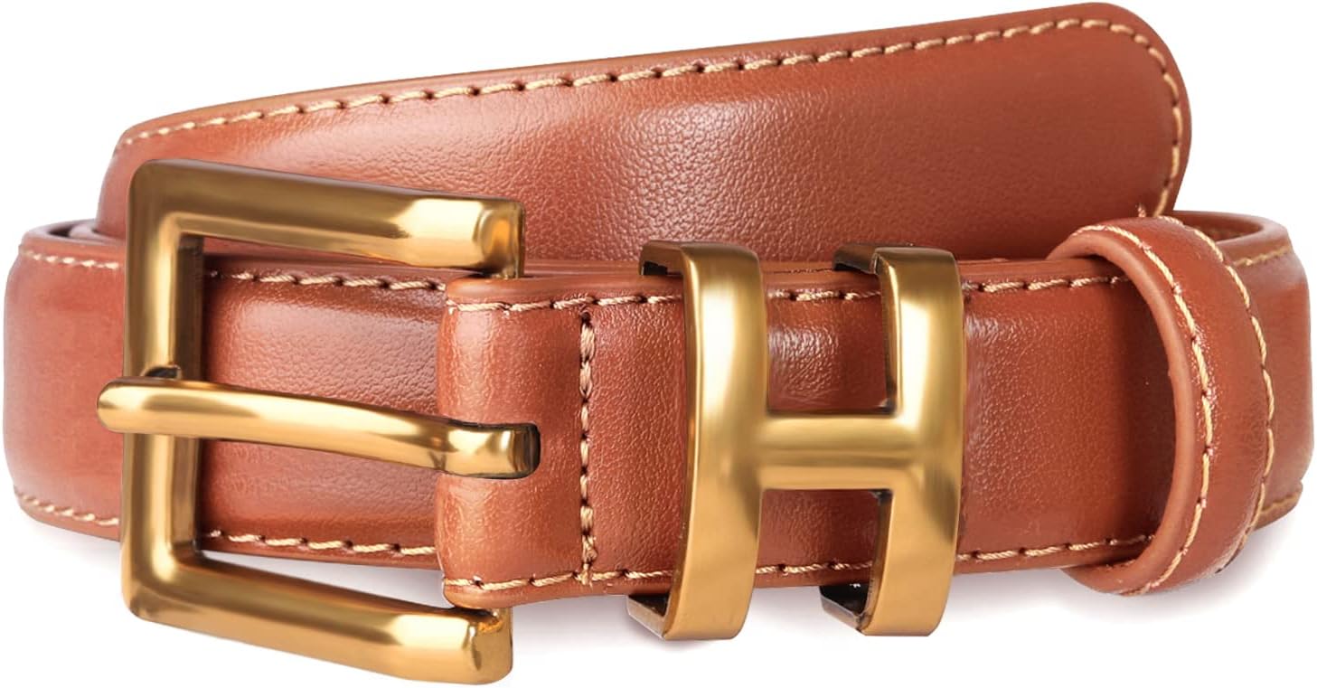 Women's Fashion Classic Metal Buckle Leather Belt with Jeans Dress