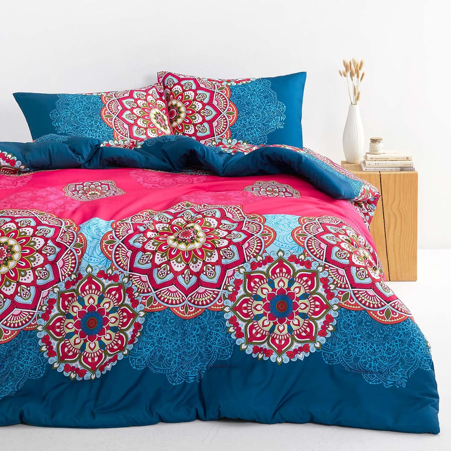 - Bohemian Design: Vibrant boho chic pattern with ornate geo-medallion elements adds bright colors to your bedroom decor; perfect for boho aesthetics