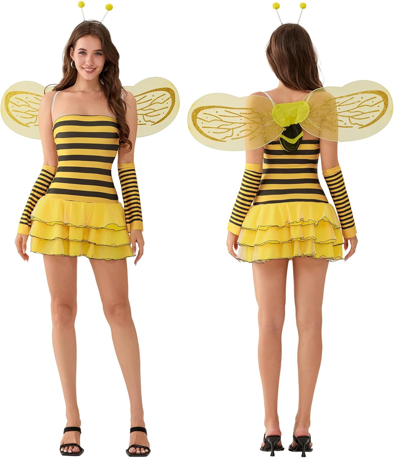 Horolam Bee Costume Accessories, Bee Costume Adult Women with Bee Wings Antenna Headband Bee Galsses Yellow Tutu for Girls