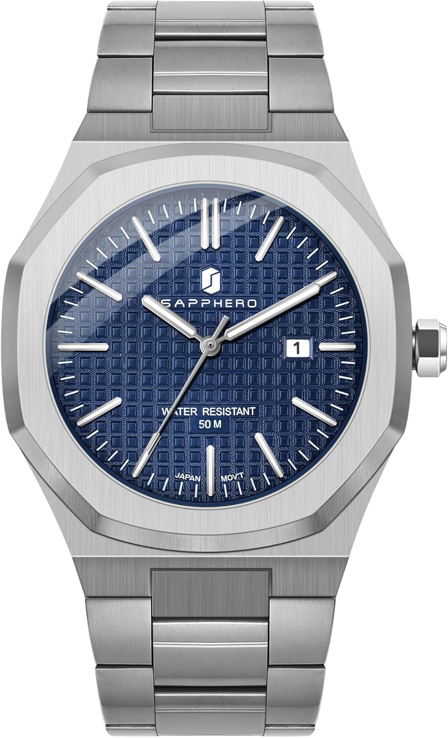 SAPPHERO Men Watches Octagonal Stainless Steel Quartz Fashion Business Men's Watch 50 Meter Water Resistant Analog Movement Multifunction Dials Classic Gifts for Men