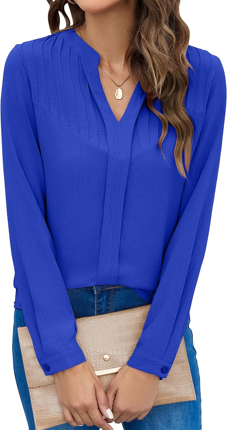 Blooming Jelly Women's Dressy Casual Blouses Business Long Sleeve Shirts V Neck Work Tops Fall Fashion Outfits