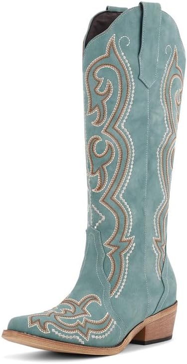 Cowboy Boots For Women Knee High Western Cowgirl Boots Snip Toe Side Zipper Chunky Heel