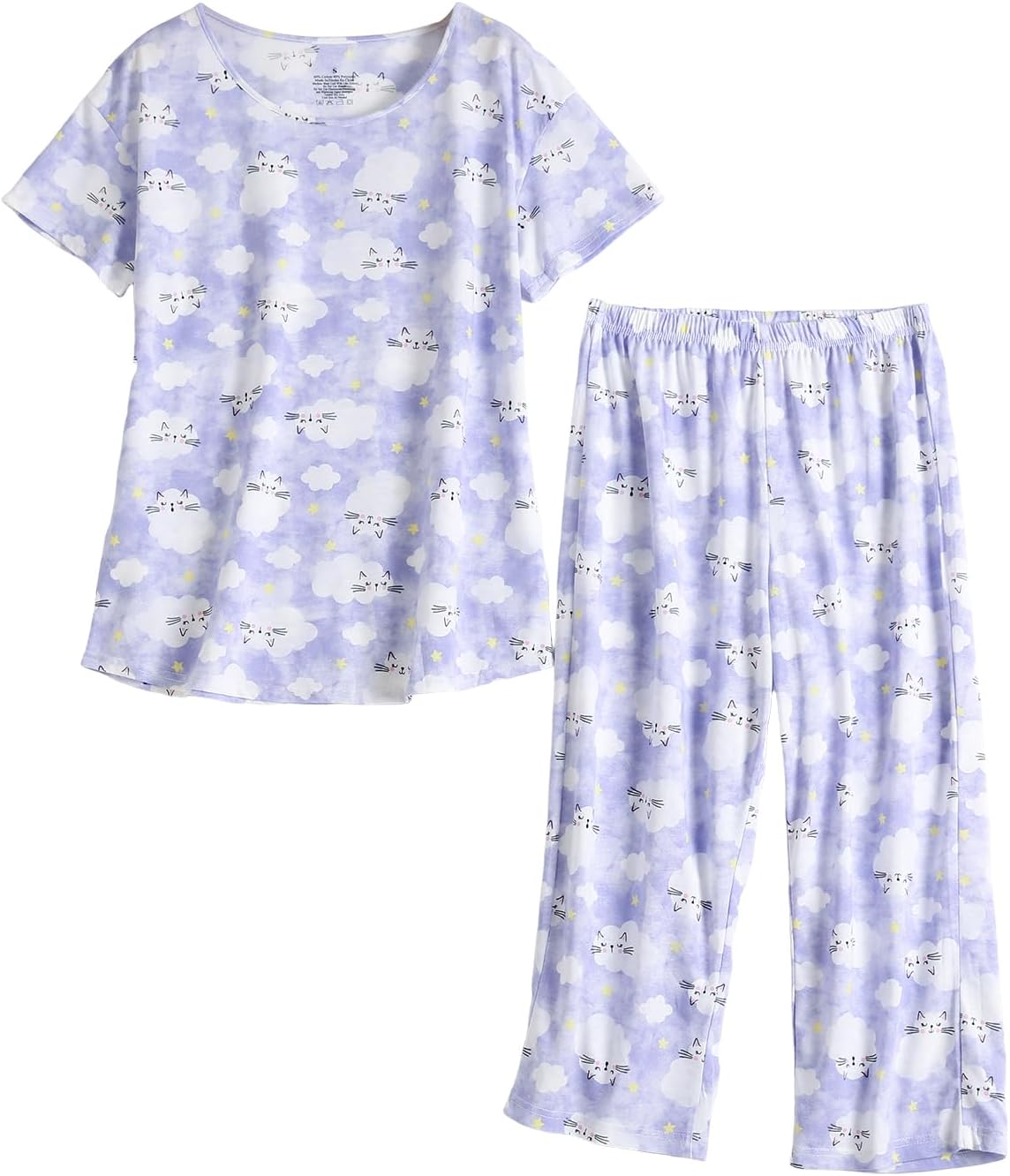 Inadays Womens Cotton Pajama Sets Short Sleeve Top With Capri Pants 2 piece sets for Women Summer Pajamas Lounge Set