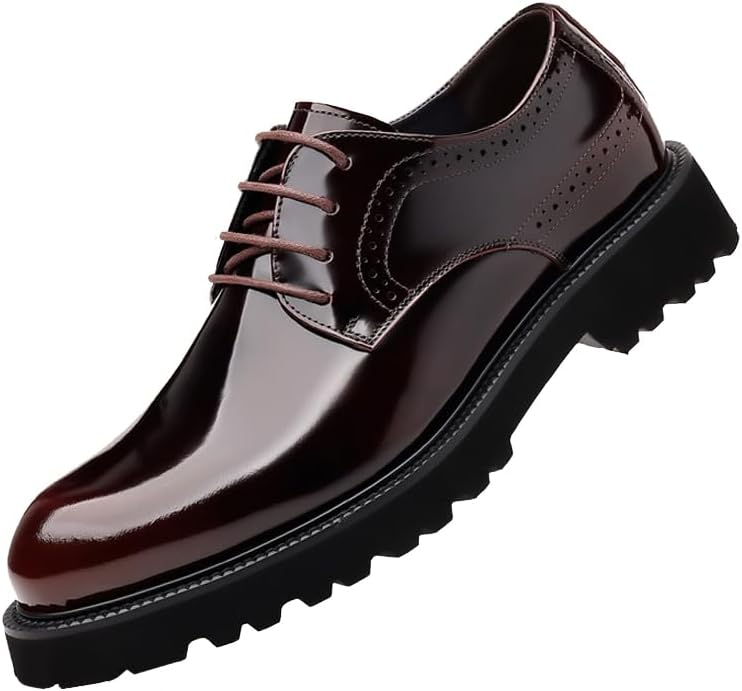 Men's Patent Leather Lace Up Platform Work Oxfords Round Toe Slip Resistant Low Top Lug Sole Brogues Dress Shoes Comfortable Business Formal Shoes