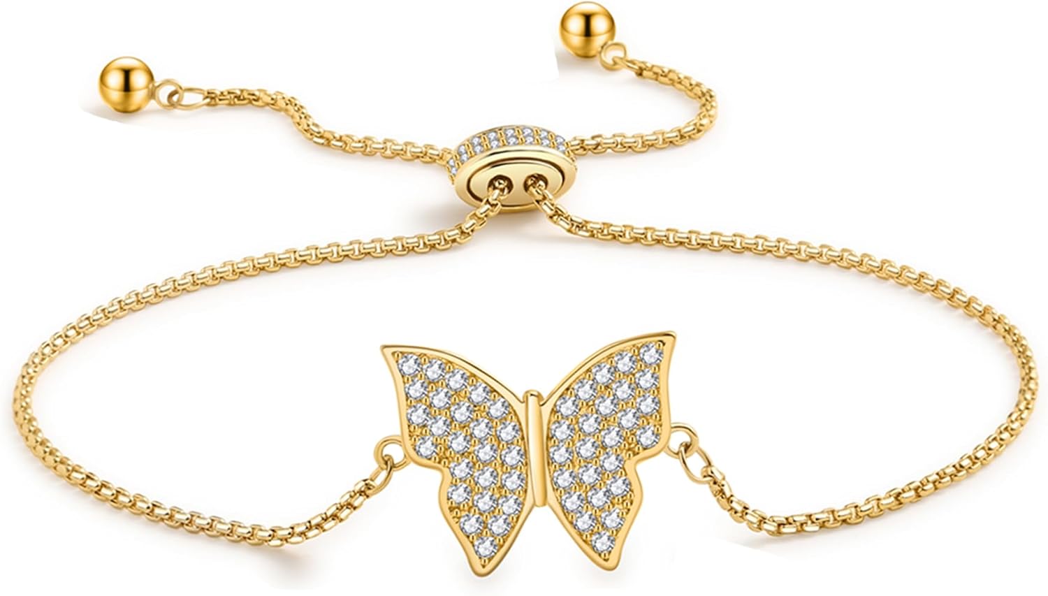 Butterfly Earring Necklace Bracelet Set - 14K Gold Plated Dainty Butterfly Jewelry Set with Cubic Zirconia, Birthday Bar Mitzvah Gifts for Women | Color: Gold/White Gold/Rose Gold