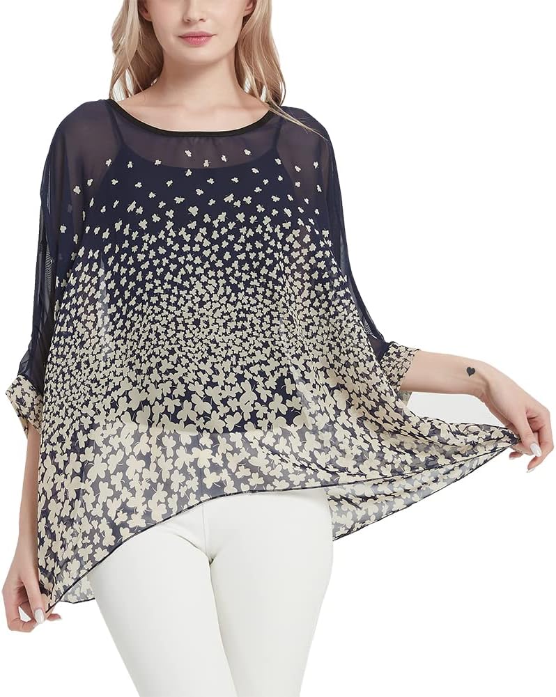 Women's Bohemian Style Summer Beach Lagenlook Top Kimono Loose Waterfall Chiffon Kaftan Poncho Shirt