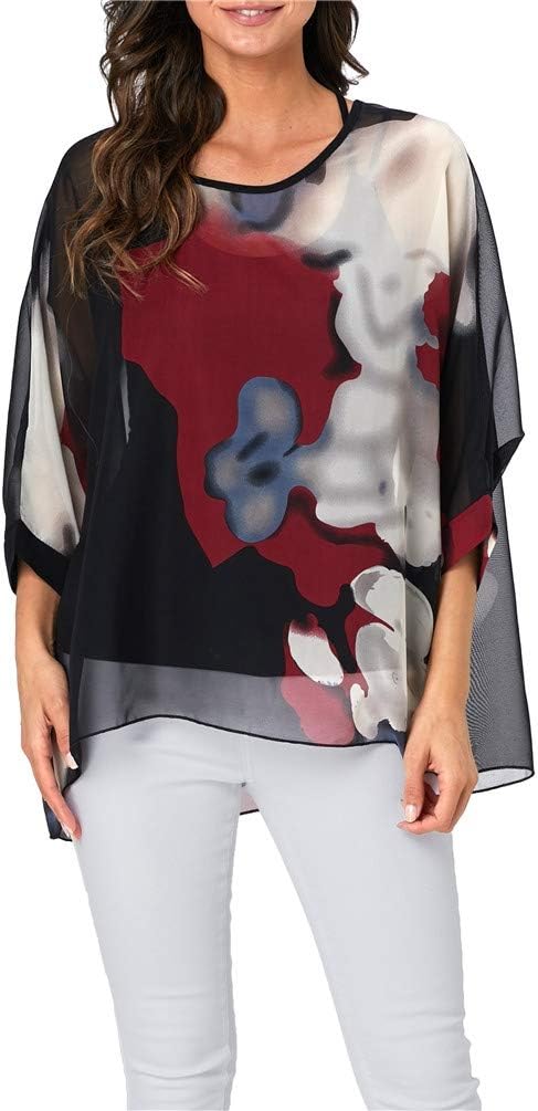Nicetage Boho Top Sheer Dressy Blouse Chiffon Blouses for Women Sheer Poncho Flowy Batwing Tops Cruise Wear