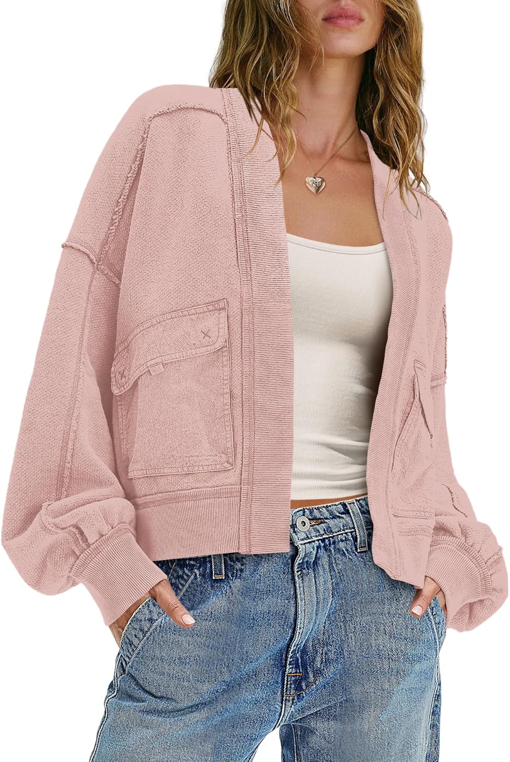 SENSERISE Womens Open Front Sweatshirt Cardigan Oversized Cardigan Casual Long Sleeve Fall Outfits Jacket with Pockets