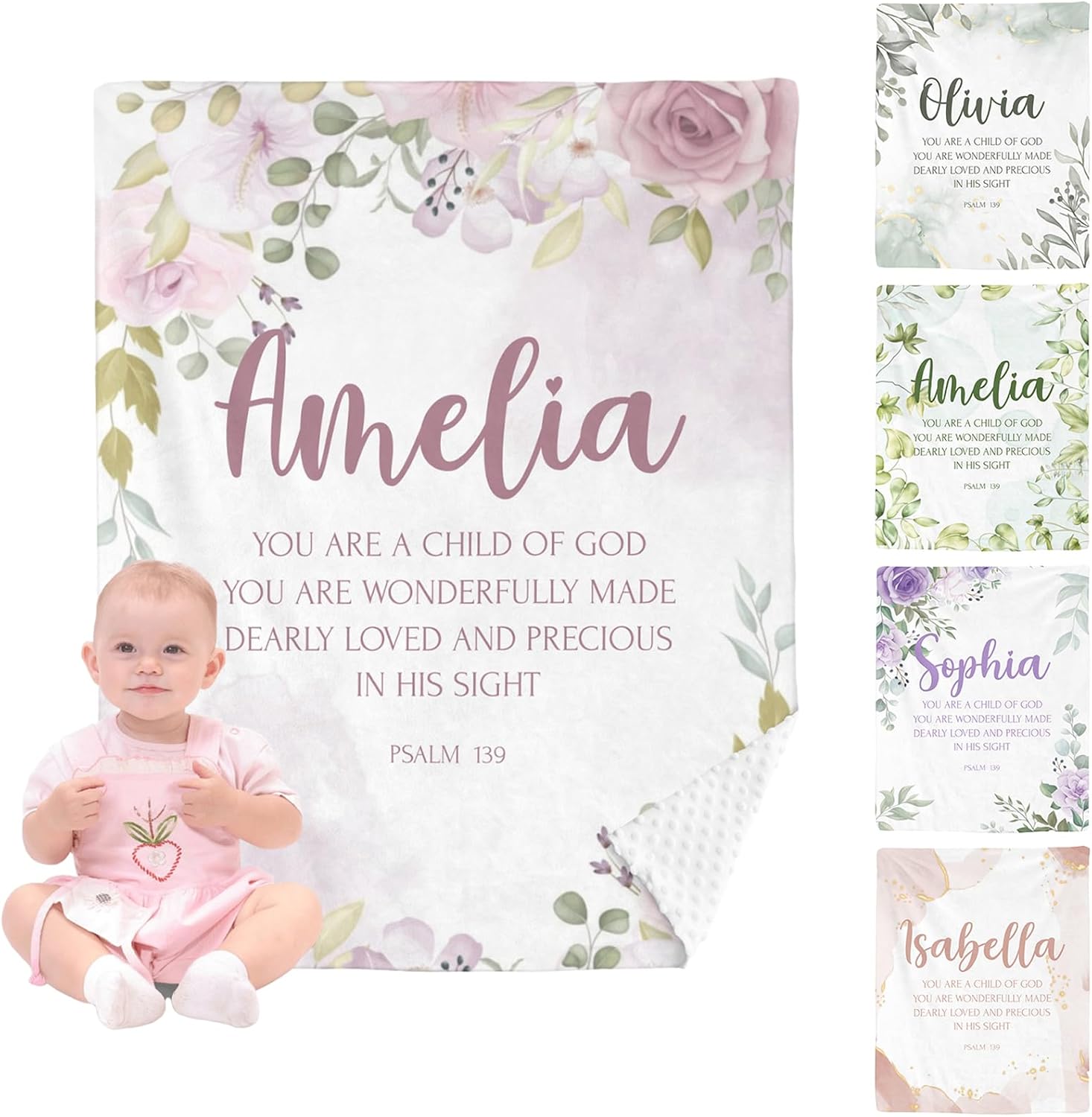Personalized Baby Blanket, Customized Christian Baby Shower Baptism Confirmation Gifts for Boys Girls, Soft Minky Blanket, Catholic Spiritual Themed, You are A Child of God, Floral