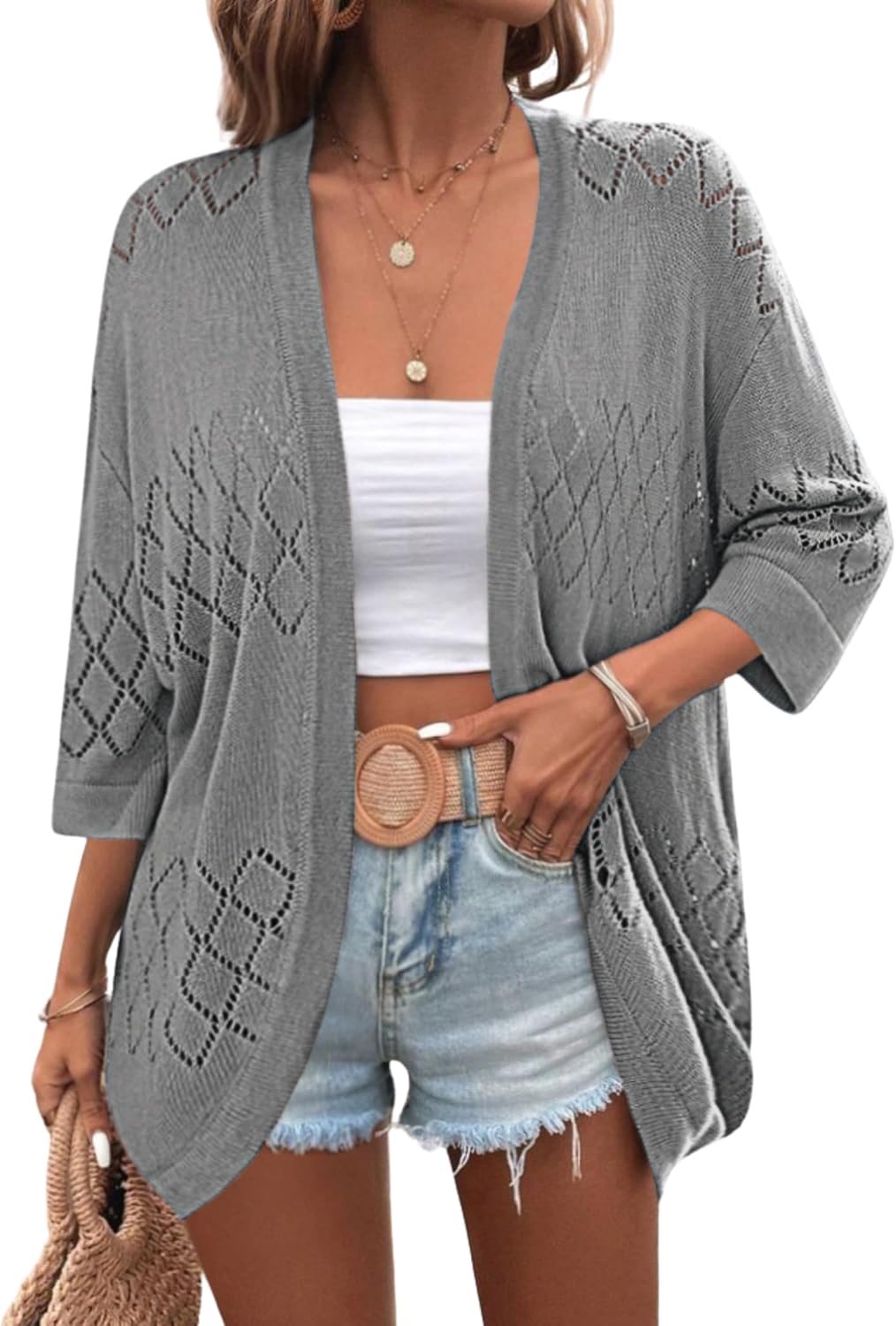 Zeagoo Womens 2026 Lightweight Crochet Cardigan Sweaters Open Front 3/4 Sleeve Knit Kimono Summer Boho Cover Up